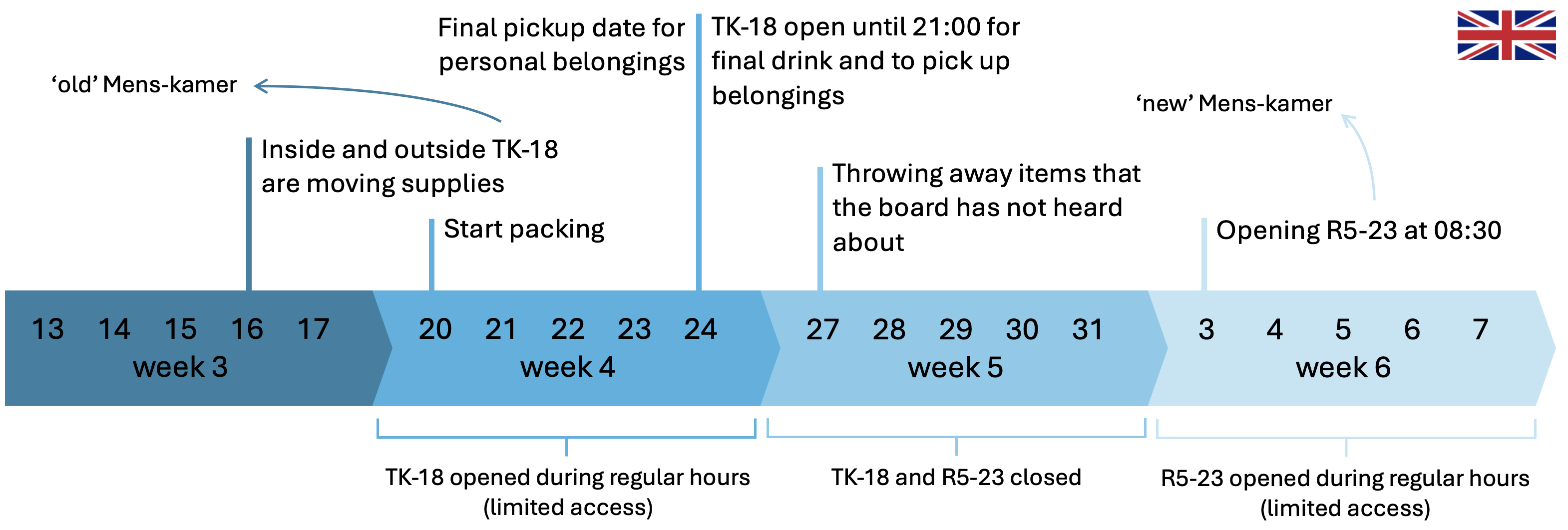 In week 4 (20 - 24 januari) blijft de Mens-kamer geopend. De Mens-kamer zal wel minder toegankelijk zijn.